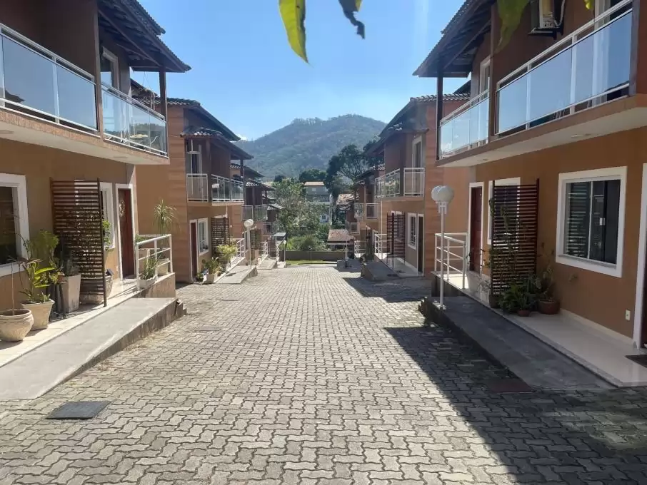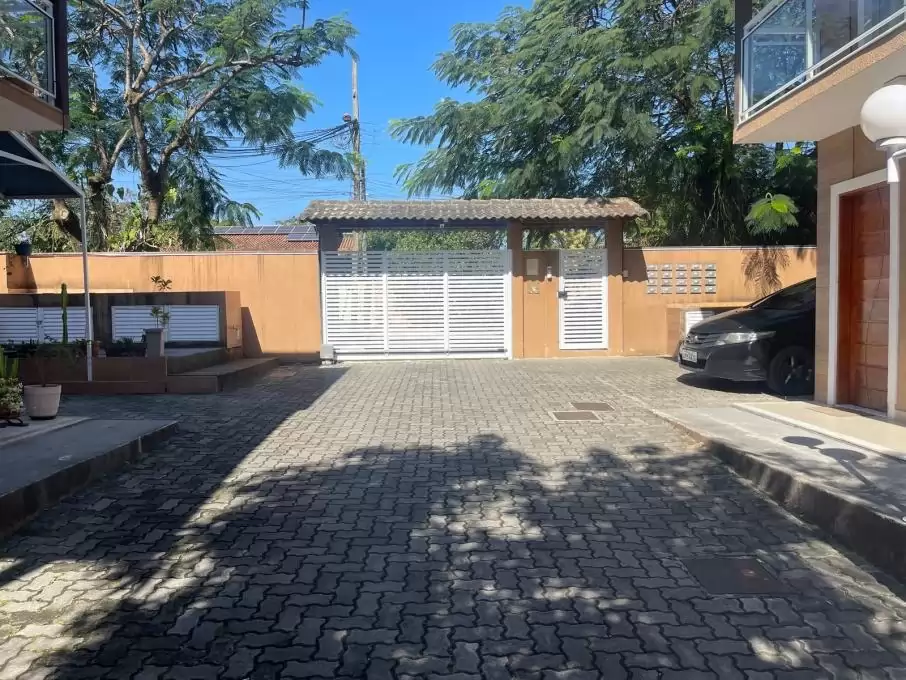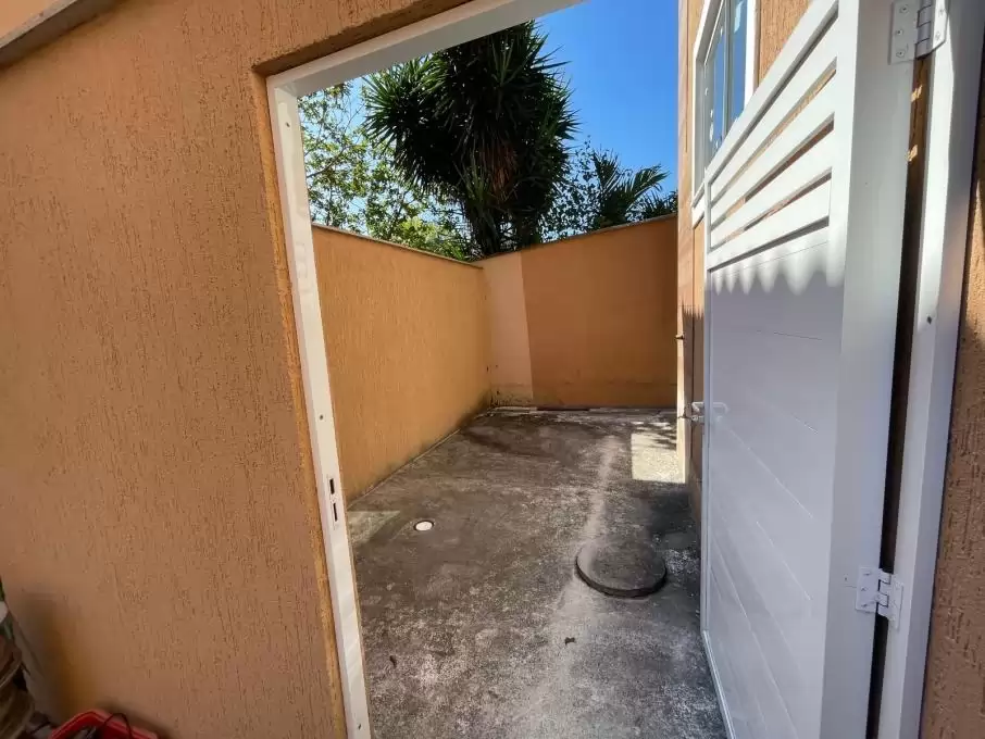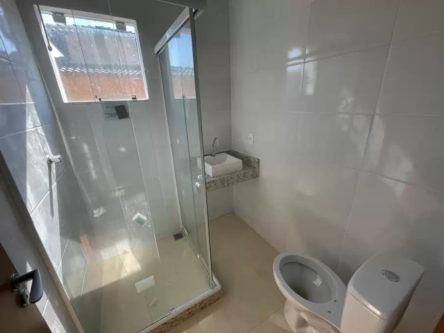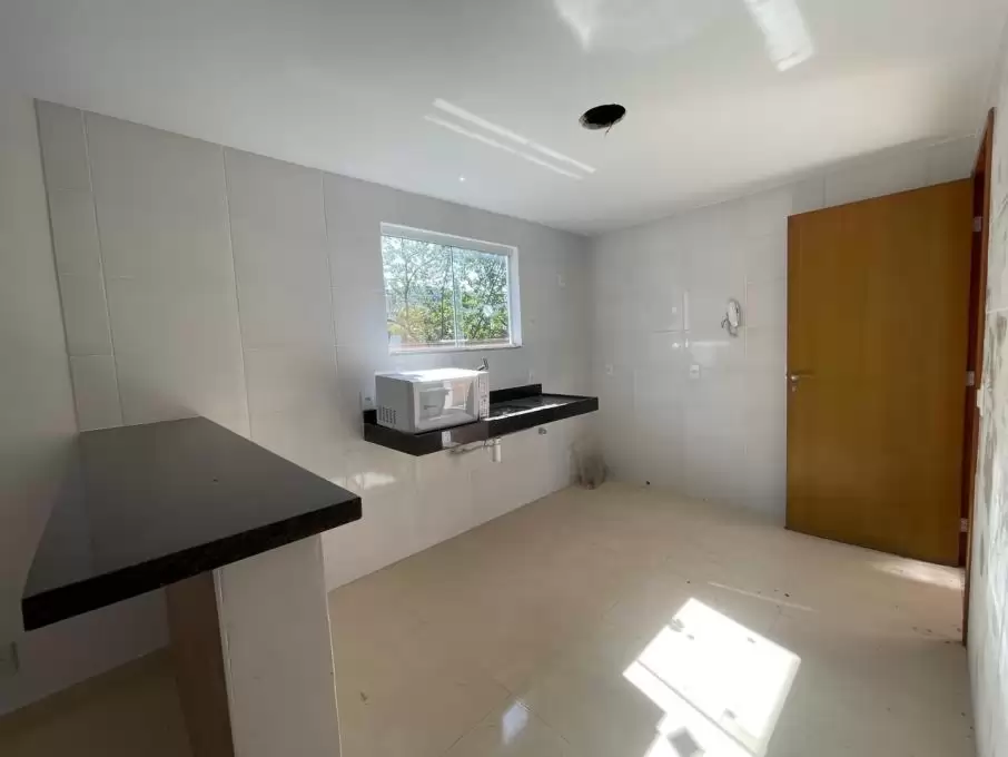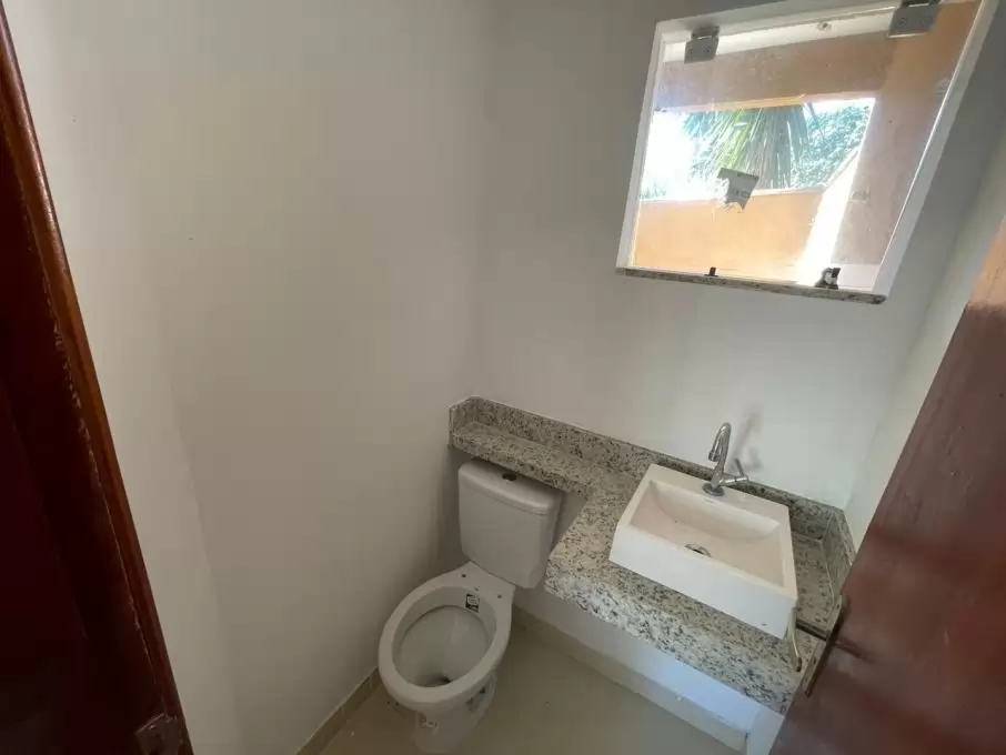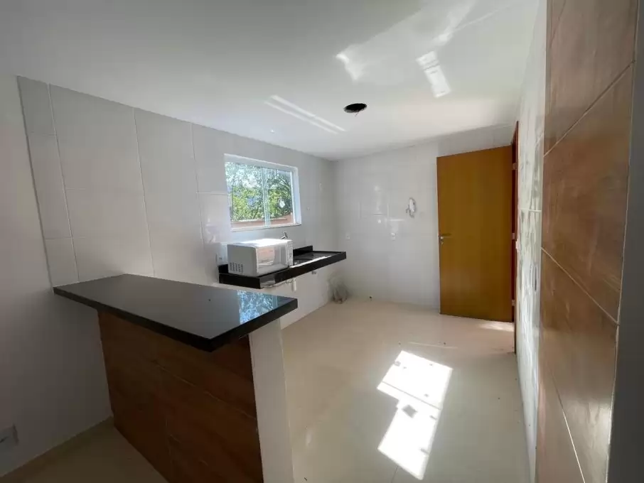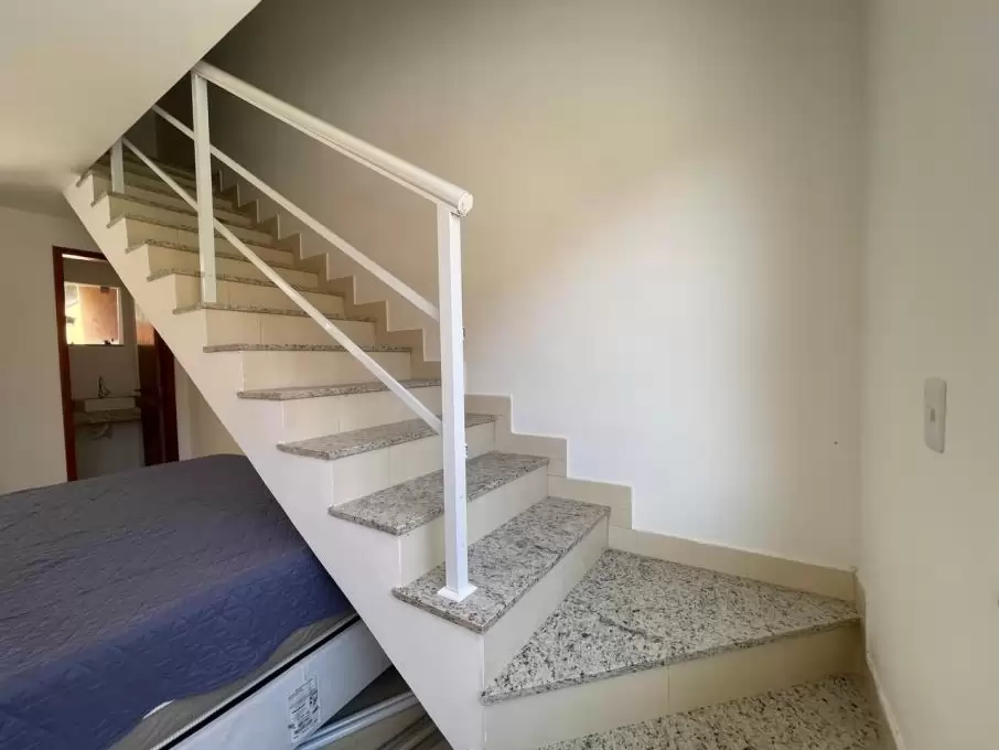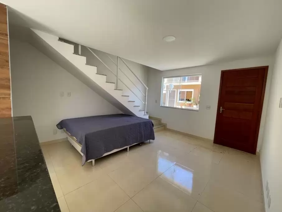 Casa duplex com 2 quartos sendo 1 com sacada, banheiro social, sala com teto rebaixado, cozinha americana, lavabo, área de serviço, área privativa e garagem.