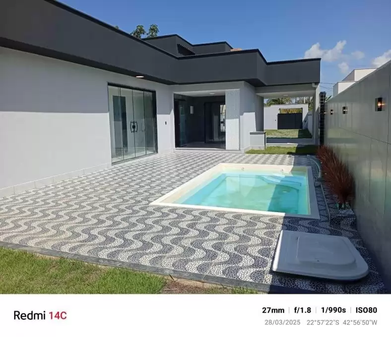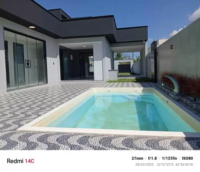 Maravilhosa casa com projeto moderno com pé direito duplo em um terreno de 480M2 e área construída de 127M2 localizada no Jardim Atlântico Central de Itaipuaçu!!! Composta por 3qts sendo 1 suite com closet, sala ampla e com pé direito alto com painel e rack, cozinha com planejados, banheiro social com armário, varanda e área de serviço coberta!!! Tudo em fino acabamento, porcelanato, porta principal pivotante em aluminio, rebaixamento em gesso com luminárias embutidas de Led, janelas e box dos banheiros em blindex!!! Área externa com garagem para varios carros sendo 1 coberto e com portão em alumínio, jardim, área gourmet com planejados com churrasqueira, lavabo, chuveirão e linda piscina para a diversão de sua família!!!